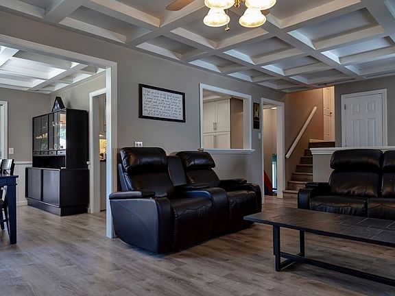 - Features: Coffered Ceiling(s), Flooring - Laminate, Open Floorplan, Remodeled, Lighting - Pendant