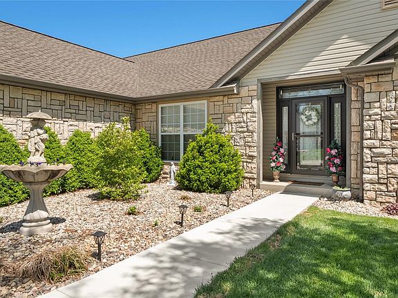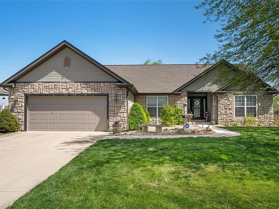 Beautiful ranch home located in Alpine Meadows! Walking in you’ll immediately notice the vaulted ceilings and open floor plan, the living room has a gas fireplace and opens up to the eat in kitchen. The kitchen features stainless appliances, a double sink with a pull down faucet, breakfast bar, pantry, and a breakfast room that leads out to the fenced in yard with a covered composite deck and stone patio. The large master bedroom has vaulted ceilings and a walk in closet, primary ensuite was renovated in 2020 and has a gorgeous double vanity, walk in shower, and linen closet. On the other side of the home are two additional bedrooms and a shared full bathroom. The finished basement has a family room with kitchen cabinets, small fridge, a large bonus room that could be a possible extra bedroom, a 3/4 bath, and storage room. Main floor laundry room has a utility sink, and leads out to the oversized two car garage that has additional storage as well. List of improvements available.