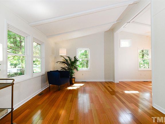3 bedroom 3 bath home with full walkout basement. Large fenced corner lot in a quiet, family friendly neighborhood on bus route. Walk to Farmers Market and Weaver Street. Bicycle to UNC. Updated kitchen with new appliances. Bathrooms all new. Great screened porch overlooks wet weather creek with mature trees. Refinished basement with separate entrance and mini split system, wet bar, full bath, laundry and living space. Unfinished basement workshop/storage space.