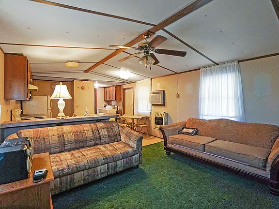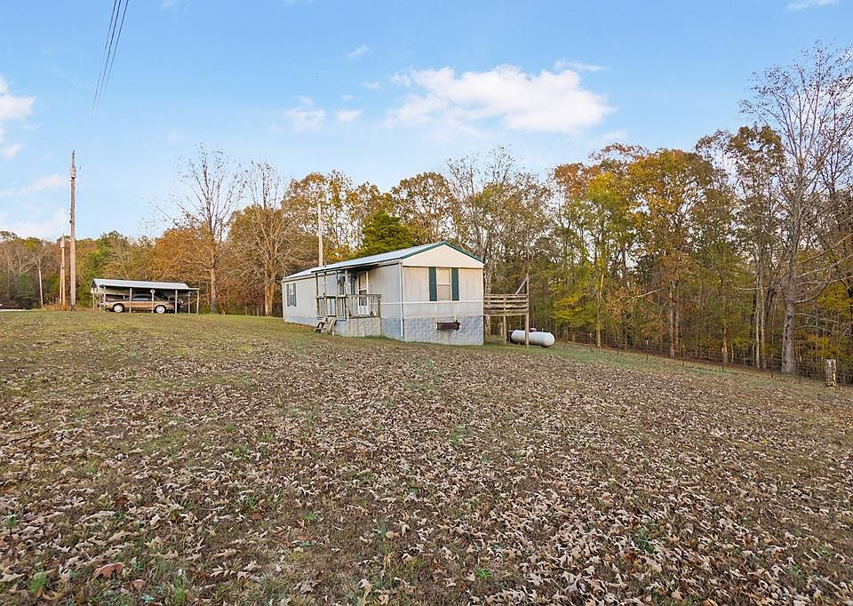 This cozy mobile home sits on 1.9 acres with small fenced area in the back, small stables with pen and storage building w/ electric. The mobile home is well kept, 2BR-1BA,custom cabinets in kitchen, central H/A yet owner preferred propane wall unit and wall A/C unit which have been installed. Propane tank will convey. New metal roof-2024. Fiber optic internet available. Nice sized back deck, 2 car detached carport. Neat setup, furnishings included. Being Lot 10-Dogwood Hills. Minutes to Barkley Lake-hunting areas-Wildlife Refuge. Great residence-weekend retreat or rental investment.
