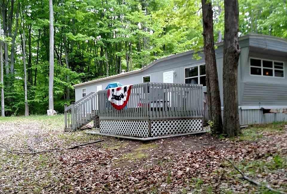 2 bed 1 bath. Around 695 sqft . New floors, kitchen and bathroom as been completely renovated. Master bed room has been flipped as well new carpet and trim, and nice sized closet. Sits on 2 large wooded lots, the house sits on the top of a nice hill, with a nice private back yard. Also have a great front deck for parties and entertaining. Around 2 acres with a nice shed, with electric running to it. There is a well and a electric on both lots HOA FEE is around 115 a year.