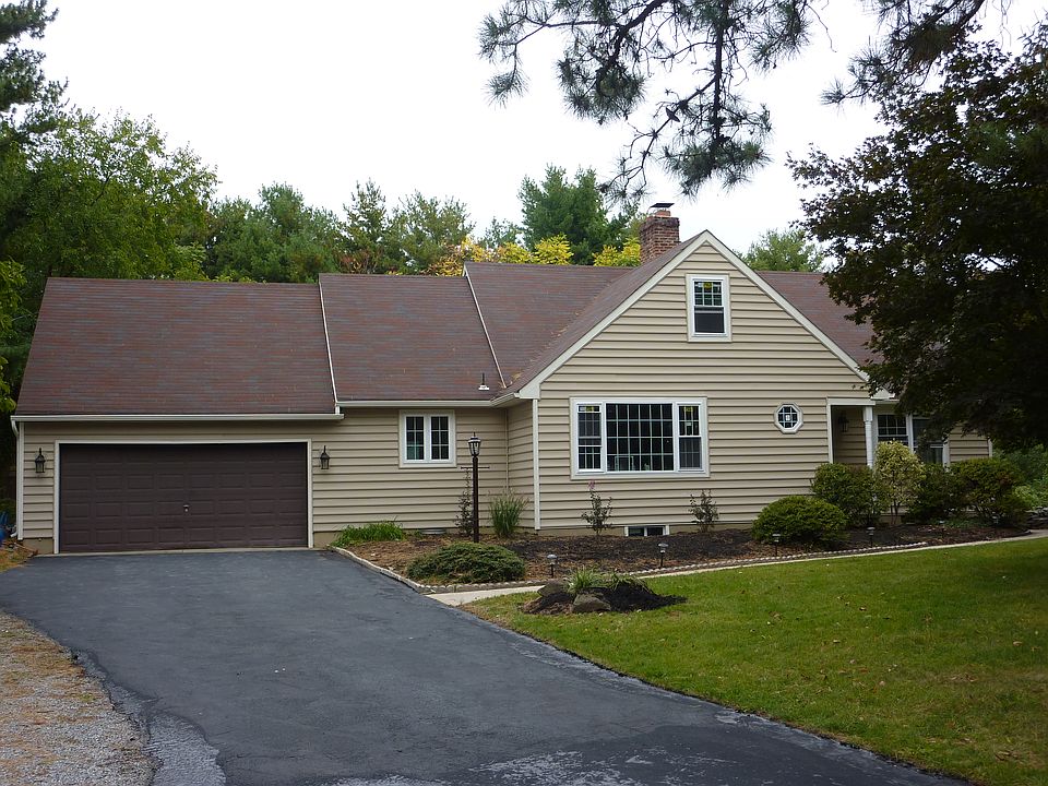Lovely 4 bedroom, 2 bath home on cul-de-sac. Features two-sided brick fireplace, new hardwood flooring, carpet, kitchen and bathrooms. First floor laundry and master bedroom, eat-in kitchen overlooking deck & yard. Huge room sizes + 2 car garage. Finished basement