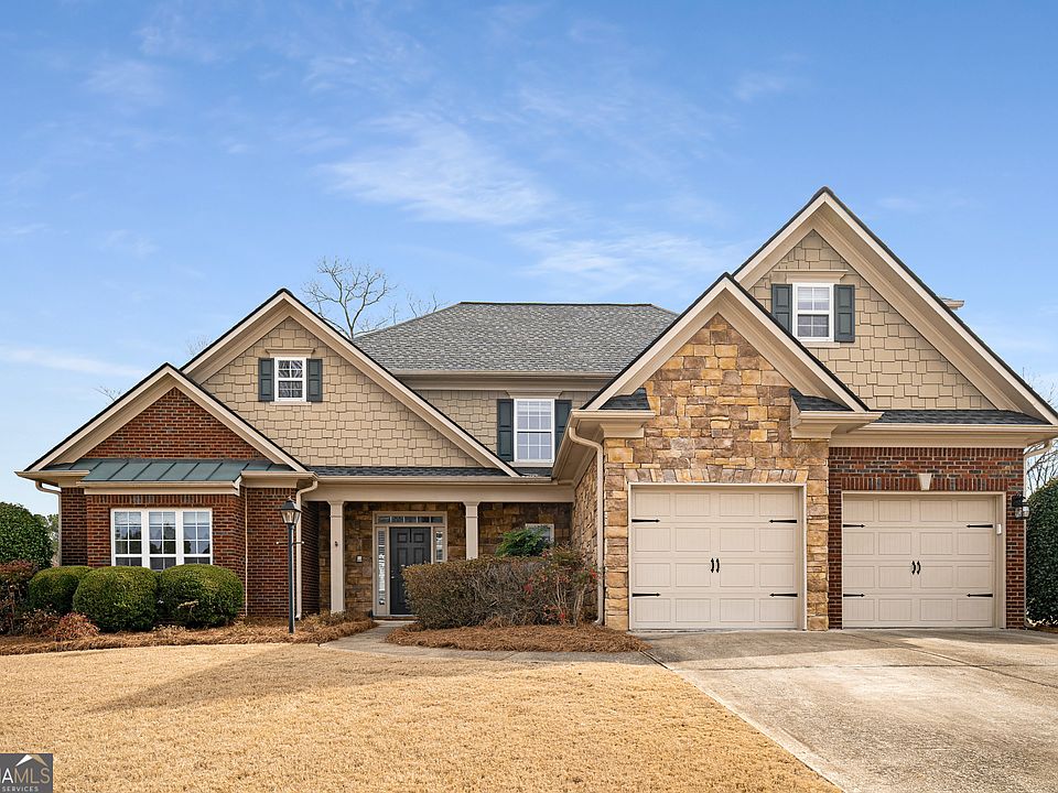 Welcome Home! Inviting Rocking Chair Front Porch leads the way into this beautiful home. Gorgeous details include 2 Story Foyer with hardwoods and hardwoods on staircase, Spacious Open Concept Dining Room with hardwood floor, and Living Room with box bay window and vaulted ceiling-could easily be your home office. 2-Story Family Room: catwalk overlooks, ample windows, natural light, hardwoods and open to Kitchen for easy entertaining. Kitchen boasts bar and separate island, stainless steel appliances, double ovens, separate gas cooktop, built-in microwave, hardwood floors, breakfast area with vaulted ceiling, granite countertops and open to Family Room. Laundry Room conveniently located on the main level with window. Primary Bedroom on Main with vaulted ceilings and oversized, walk-in closet. Primary Bath offers tiled floor and shower, dual vanity, separate tub/shower and vaulted ceiling. 2 Secondary Bedrooms upstairs plus Huge Bonus Room (could be a 4th bedroom, but no closet). Walk-in attic storage. Enjoy the outdoors as you relax on the back patio overlooking quiet, private backyard that backs up to a large private property pasture! Great cul-de-sac lot with level driveway. Home features brick and stone front plus hardieplank sides/back. Quiet street yet quick access to exit neighborhood. Bridgemill Athletic Club offers various amenity options including: 2.5 acre aquatic center, tennis, pickleball, golf, basketball, volleyball, playground, concerts in the park, fitness center, restaurant, picnic pavilion and more! Membership is optional. HOA is separate with $200/yr mandatory dues.
