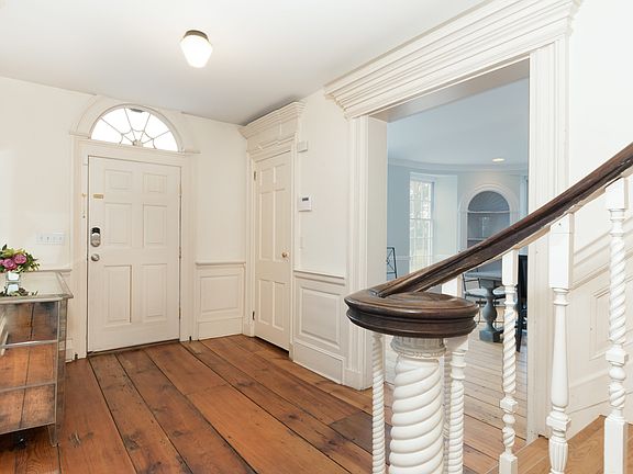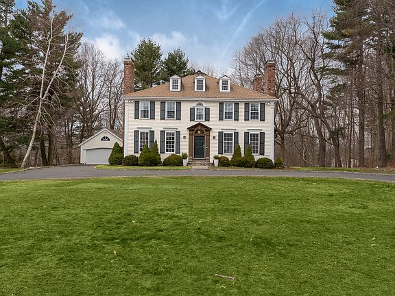 Stunning classic New England colonial moved from Massachusetts and reconstructed on prestigious Long Neck Point in 1982. Level lightly wooded 1.24 acres. Beautiful wide board flooring. Generous rooms with seasonal water views. Master suite, three fireplaces, awesome third floor family room with cathedral ceiling and antique beams.