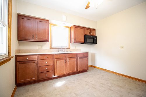 To view all of our places, or to apply online, check out 419Rentals.com.Come see inside this nicely updated 4BR home that's conveniently located near 1-280 in East Toledo! The large living room has beautiful hardwood flooring and lots of natural light. The brand new kitchen comes with rich maple cabinetry, solid surface countertops, modern flooring and a black over-the-range microwave! Both downstairs bedrooms come with hardwoods and ample closet space. The full bathroom is pristine and includes all new fixtures! The two bedrooms upstairs have plenty of closet space & great natural light. There is fresh paint throughout as well as energy-efficient windows to help keep utility bills low. Let's not forget the full basement with additional storage or work space & the washer/dryer hookups. Central air will keep you cool in the summer! There's also a large backyard & 1.5 car garage! Schedule your showing today before it's too late!Rent is $895, Deposit is $895. Application Fee: $25 per adult. Rent-to-own options also available. Pets accepted: Dogs are an extra $30 and cats are an extra $15 per month.Sorry, Section 8 is not accepted.Qualified applicants must have a minimum credit score of 600, positive residential history, make three times the rent, have no prior evictions or housing related collections, and a clean criminal background.