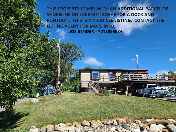 Here is a great opportunity to own a beautiful home that is off the water at Lake Metigoshe. The home has a 18 x 32 steel shop which is 8 years old and in excellent condition. The home is in immaculate condition and is being sold completely furnished. There are 1500 sq. ft and 3 bedrooms and 2 baths. There are 2 bedrooms and the master bedroom is large(15x16) in size on the main level. There is a large living room, bathroom and dinning room, along with an additional bedroom on the main level. The kitchen has new counter tops and backsplash. The basement is a walkout and there is a bedroom and mancave down there. A huge deck on the front of the house is perfect for enjoying beautiful views of Lake Metigoshe. The house has a shared well with the neighbor and the house has electric baseboard heat and forced air propane heat. The owners installed a new wall A/C unit too. The huge bonus with this house is that the sellers also own a 6 ft wide by 150 ft deep parcel on the lake, allowing them a spot for a dock and pontoon. The sellers are also selling their Pontoon, dock and boat lift but these items are being sold sperate from the house.