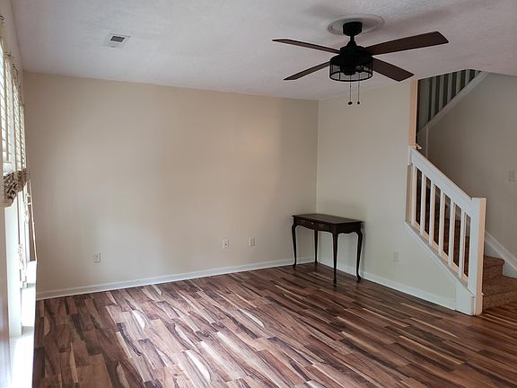 Move in ready townhome that has a new roof, a front porch, 3 bedrooms, 2.5 bathrooms, living room, dining room, kitchen, laundry room and a covered patio. Open living room has laminate flooring and a ceiling fan. Kitchen has lots of cabinets, granite counter tops, stainless steel appliances except for refrigerator is white, built in microwave is new, recess lighting, pantry and a island. Laundry room is downstairs. Master bedroom has vaulted ceiling and a ceiling fan. Master bathroom has granite countertops. The 2 bedrooms are good size and 1 bedroom has a window seat. Bathroom has granite countertops. Covered back patio and a storage room. HOA includes water & sewer, landscape, building insurance and pool. Home sold as is.
