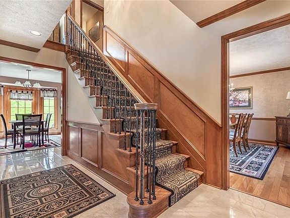 Updates galore with beautiful interior finishes, majestically situated on 0.70 acres in the Crossings of Peter's Twp. Covered porch and mature perennial landscape with sweeping drive leads up to the coveted attached garage. Built by Eddy Homes where quality abounds. Porcelain entry and kitchen floor. Detailed moldings including crown, chair and wainscoting throughout 1st floor. Living room converted to stunning office with double glass doors. Formal dining room offers hardwood floors. Saloon doors for ease in entertaining to the striking eat in kitchen with newly refinished cabinets, granite, updated fixtures and bar area. Access to the rear yard and patio from kitchen. Mudroom/laundry with man door to outside. Spacious family room with plush carpeting, wood burning fireplace and built-ins. Owner suite offers hardwood floors, updated ceramic bath, heated floors and skylight. 3 additional bedrooms plus bonus room with great storage. Newer Pella Windows and 6 panel wood doors throughout.