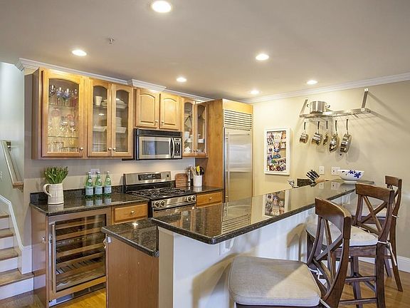 Meticulously maintained 1st floor 3BR/2BA. Thoughtfully designed floor plan offers flexible options for entertaining, 3 exposures, gas fireplace, built-in bookshelves, recessed lighting & beautiful hardwood floors. Central A/C & Washer/ Dryer in Unit. Kitchen boasts stainless steel appliances, including a Sub-Zero , Cherry cabinetry & rich granite countertops. Private & Luxurious Master Suite. Low Condo Fees, Priv. Deck, Storage & 1 TANDEM Parking Space.