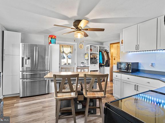 Take a look at this Charming 2-story, 4-bedroom, 1-bathroom, with renovations completed in 2024/2025. This residence seamlessly blends classic charm with some well-thought-out upgrades in storage & design, creating an inviting atmosphere that feels like home. As you enter, you are greeted by a spacious floor plan that flows effortlessly from room to room. The heart of the home features a combination kitchen and dining area, perfect for both casual meals and entertaining guests. The eat-in kitchen is equipped with some newer appliances, including a sleek electric oven/range, a convenient microwave, a dishwasher for easy cleanup, and a refrigerator. Beautiful built-ins add character and functionality, providing ample storage while maintaining the home's traditional aesthetic. The living spaces are adorned with plush carpeting and newer laminate flooring, offering warmth and comfort underfoot. Ceiling fans throughout the home ensure a refreshing breeze on warm days, while the thoughtfully designed layout maximizes natural light, creating a bright and cheerful ambiance. With four generously sized bedrooms, each offering a peaceful sanctuary for rest and relaxation. The full bathroom features a classic tub shower combination, providing a perfect spot to unwind after a long day. The property boasts a well-maintained basement with a connecting stairway, offering additional space for storage or potential customization to suit your lifestyle. Outside, the expansive lot of 0.21 acres provides plenty of room for outdoor activities, gardening, or simply enjoying the fresh air. Parking is a breeze with a driveway accommodating two vehicles and additional parking available in the lot for guests. Located conveniently near the school bus pick-up, this home offers easy access to transportation, making it easy to explore the surrounding area. This residence is not just a house; it's a lifestyle. Experience the perfect blend of country and comfort in a home that invites you to create lasting memories. Don't miss the opportunity to make this property your own.
