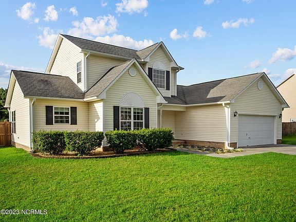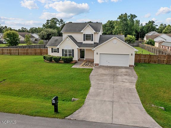 Multiple offers, highest and best due by 6pm on 8/23. LOCATION, LOCATION, LOCATION! Are you looking for a home conveniently located to the Marine Corps bases, desirable Swansboro, the beaches and so much more! Step inside this 1809 sqft home featuring 4 bedrooms and 3 bathrooms with a first floor primary bedroom. The primary bedroom features a large soaking tub and walk in closet. Go back to the open living room and kitchen makes this a desirable home for entertaining. If you like to entertain then you will LOVE the backyard. This yard features a fully fenced oasis with a fire pit! Stepping back inside you find three additional bedrooms upstairs. This home comes with a transferrable Supreme 2-10 Warranty. Book your showing today, you will not want to miss out on this home.