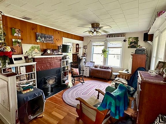 This adorable bungalow is ready for new owners! Relax on the covered porch and enjoy your morning coffee. Step inside to an inviting living room and cozy up by the fireplace with a book. First floor laundry. Open concept kitchen and dining room and a half bath complete the first floor. Second floor has 3 bedrooms and a full bath. Recently paved driveway with a painted pickle ball court leads to a detached one car garage. Fully fenced in back yard is a gardener's oasis. Plenty of mature flowers and plants line the property, including blueberry and blackberry bushes. Full basement provides suitable storage with built in shelves. Owned solar panels to offset high electricity costs. Come see all that this home has to offer! ***Offer Deadline Wednesday May 15, 5PM**