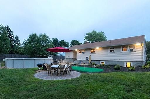 Impeccable EXECUTIVE RANCH on 1.38 acres. This house features an amazing kitchen with new/young stainless appliances along with beautiful dining and living areas. Hardwoods throughout the main floor and stunning flag stone flooring in the recessed family room (with pellet stove). Newer/updated bathrooms throughout, full finished walkout basement with additional kitchen (grandfathered) with Jenn-Air double wall oven, large family room, bonus room, and cedar closet. All appliances in the house, mounted TVâs, are included in the sale. Huge yard with a putting green, brick-paver patio, basketball court, bocce pit, fire pit, above ground pool, and spacious shed. The horseshoe driveway provides plenty of parking and convenience for cookouts and entertaining. This home shows absolute pride of ownership from top to bottom. Itâs a must see! Showings begin at OPEN HOUSE on Saturday, August 11, 2018 from 11:00-2:00. Offers will be reviewed as submitted after the open house.