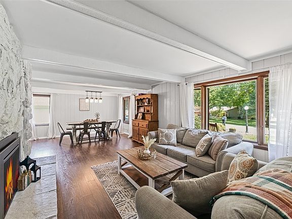You're greeted with comfort and relaxation with this spacious 4-bedroom, 2.5-bathroom home, perfect for entertaining or quiet getaways. The highlight? A large in-ground pool, ideal for summer fun and weekend lounging. Nestled in a desirable neighborhood, this home combines modern living with a serene atmosphere! The heart of the home is the open-concept main living area, where you’ll find a cozy gas fireplace in the living room, a kitchen equipped with stainless steel appliances, an abundance of cabinet space, and a functional center island—ideal for everyday living and hosting guests. Updates include a new sand filter for the pool in 2024, two new shut-off valves for the pool in 2023, the furnace in 2023, exterior painting in 2020, and the metal roof in 2019. The bonus space off the garage is well-insulated and features a bar and barstools that will stay. Whether you're looking for space to gather or a peaceful place to call your own, this home delivers the best of both worlds!