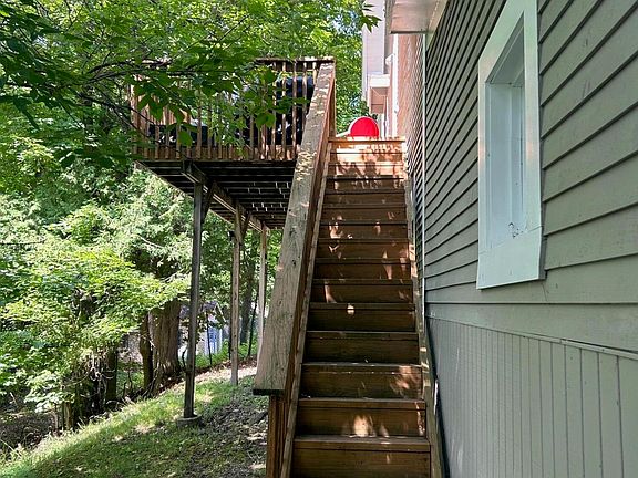 Well maintained village home with many improvements. The layout consists of the living room, dining room, kitchen and primary suite on the main floor. The main floor also consists of a spacious three season room and a large deck off of the kitchen. The second floor offers two bedrooms, a full bath and another family room. In addition to the main living space there is a fully appointed guest space in the fully finished walkout basement. It offers a third family room with a full bathroom and bedroom. In the last three years this home has had a new roof and new windows installed, along with blown insulation added in the walls and spray foam in the basement . The whole exterior has been painted. All three full bathrooms have been renovated and the kitchen has new counters and appliances.
