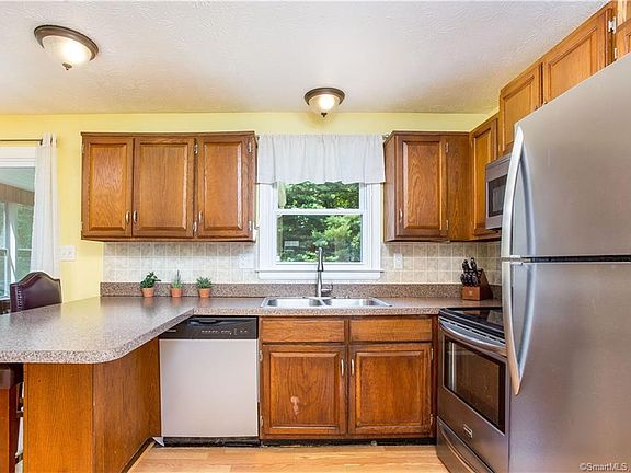 Adorable split level in desirable neighborhood featuring bright and sunny living room with bamboo wood flooring open to eat-in kitchen with stainless steel appliances, breakfast bar and sliders leading out onto sun room that looks out onto beautiful flat backyard making it perfect for entertaining! 3 bedrooms, fully remodeled full bathroom, partially finished lower level adds an additional 240 sqft perfect for a family/recreation room & 1 car garage. Updates include brand new roof in 2019, freshly painted upper level, new pellet stove in 2014 & new windows in 2011. Welcome home!