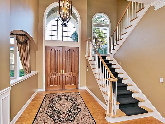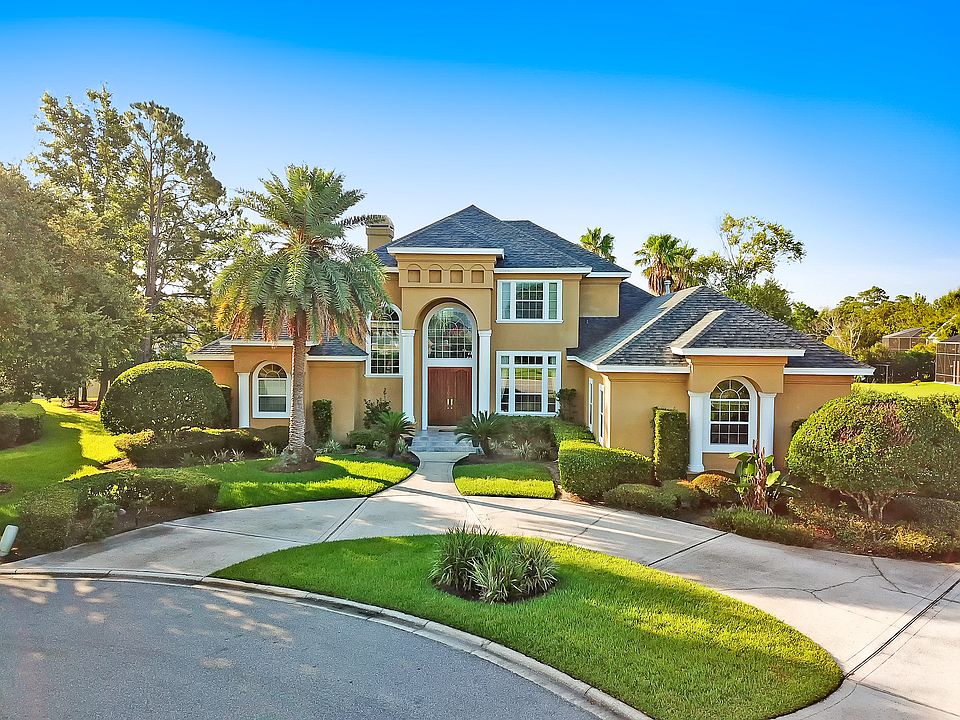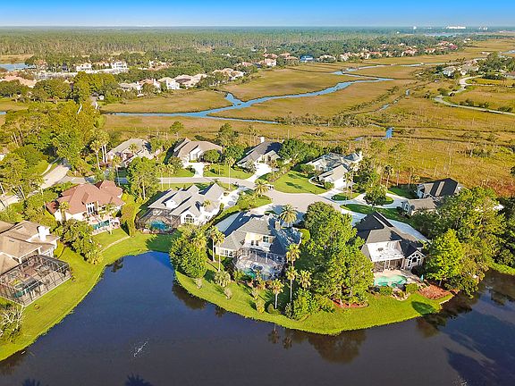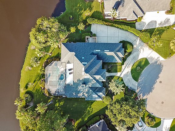 Beautiful cul-de-sac lot in Marsh Landing! Property offers a pool and spa with a lanai backing up to water with views throughout the house including the upstairs balcony. Downstairs has split bedrooms with master on one side and guest bedroom area with full bath allowing privacy with a pocket door. There is also a large full pool bath. Master is oversized with sitting area, large bath with separate vanities and larger shower with dual heads, and his and hers closets off the master bath. Upstairs consists of a large bonus room with bar area that opens to the balcony and two bedrooms with walk-in closets that have Jack and Jill vanities to a full bath. Outside has a side entry three-car garage and circular drive. New roof in 2016. New HVAC in 2012 and serviced annually.