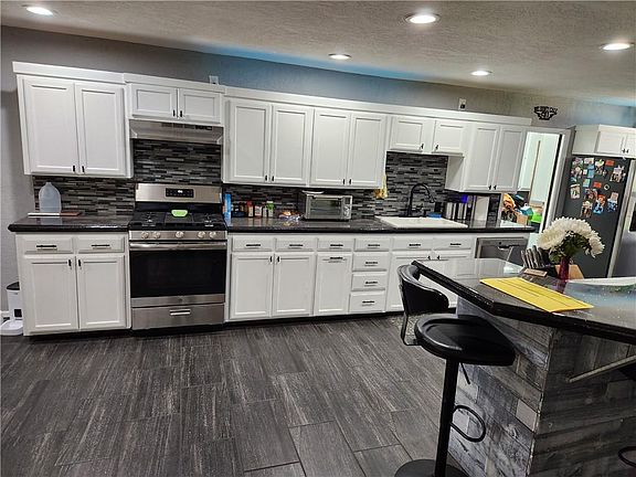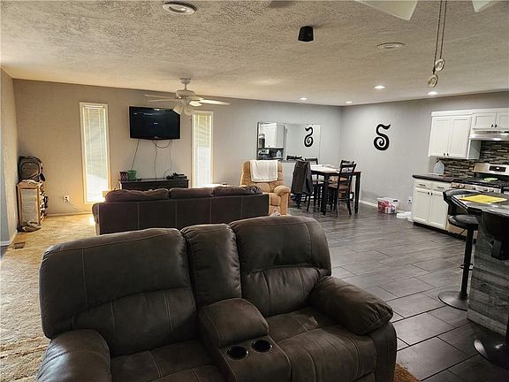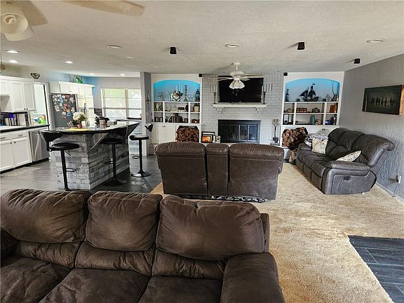 Large, brick home recently painted. This home has great curb appeal. It has an open concept, new kitchen, concrete countertops, newly updated master shower. All of the bedrooms are good sized. Nice fireplace in the living room with built ins on both sides. The patio is a dream. It is covered with a great outdoor swing. There is a small storage shed in the backyard, sprinkler system, shared well with neighbors, storm cellar located under patio, privacy fence and a large metal shop! Stove and dishwasher are 3 years old. New roof and decking in 2021.