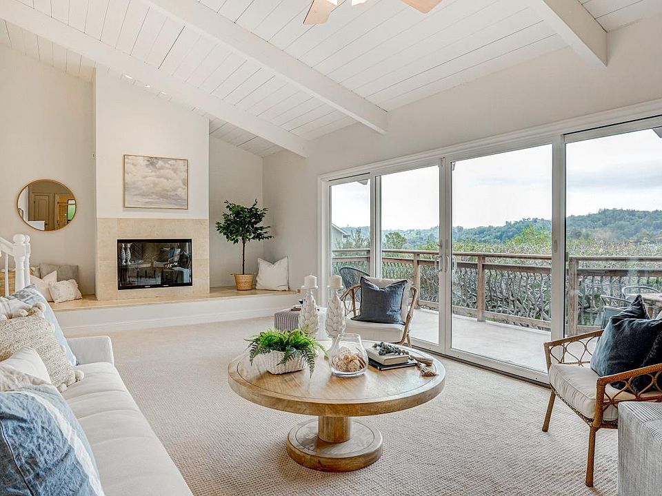 As you enter this light-filled four bedroom, three bath home, you will be awed by the expansive southern view of Mt. Tamalpais. This home offers over 3300 square feet of living space. Adjacent to the kitchen is a formal dining room with new flooring. The living room has a fireplace, high ceilings and opens to a Brazilian hardwood deck with amazing views. The main level has three bedrooms and two baths including a primary suite with a deck. The lower level has a large family room with an adjacent office, a full bath with a spa tub, a large bedroom, plus a laundry room, mudroom and pantry. New carpets throughout. There is an owned solar system. This home was solidly expanded in 2006. It has plenty of storage inside and out. Steps along the sides lead to the lower wrap-around deck with a hot tub and level yard area below. Excellent opportunity to create an ADU. Just down the street is a staircase leading to Sun Valley Park. The property is in close proximity to the award-winning Sun Valley School with easy access to downtown San Rafael and open space trails.