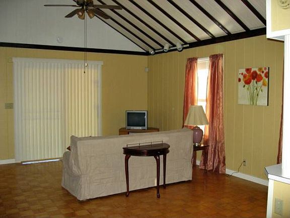 Move-in ready! Fresh paint, tile, blinds and more make this a great place to start enjoying immediately. 2BD w/shared bath, screened porch, carports & workshop. Washer/dryer hook-ups, outside shower. Completely fenced. Vaulted ceilings, ceiling fans, security system, water conditioner. Sliding glass doors open to screened porch from living & 2nd bedroom. Portion of land is in lake.