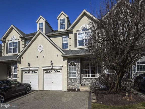 Welcome home! Rarely offered interior luxurious Carriage House in desirable Center Point Farm! The brick paver driveway leads to this impeccably maintained open floor plan home that will not disappoint! Gorgeous hardwood floors throughout the 1st floor. Welcoming foyer entrance leads to the Living Room featuring crown molding, recess lights and large window seat and is the perfect backdrop for entertaining. The elegant Dining Room, complete with chandelier, wall sconces, crown molding, chair rail and (double sided) gas fireplace into the Family Room, offers space for more formal entertaining. Gourmet Eat-In-Kitchen features 42" Maple cabinets, center island, double wall oven, gas cooktop, double sink, appliance caddy, granite countertops, tile backsplash, recess lighting, skylight and vaulted ceiling! Spacious Family Room boasts recess lighting, built-in shelving, skylights, vaulted ceiling, and the other side of the gas fireplace for those cozy evenings at home! The sliding glass door leads to the large rear deck - the perfect spot for outdoor enjoyment with friends and family! A conveniently placed Power Room with a lovely pedestal sink completes the 1st floor. Double door entry into the luxurious Master Bedroom Suite features, vaulted ceiling, two walk-in closets, recess lights and ceiling fan. The new spectacular Master Bath offers tile floor, soaking tub, tiled stall shower with frameless glass enclosure, double sink and recess lighting. Two additional Bedrooms both with ample closet space, vaulted ceilings and one bedroom with a ceiling fan. Ideal 2nd floor laundry with gas hook-up will make doing chores a breeze! Hall Bath with ceramic tile floor and ceramic tiled tub shower combination, and hall linen closet. The marvelous third floor loft offers unique space for a study, office area or fourth bedroom that includes 2 skylights, ceiling fan, vaulted ceiling, two closets and heater room, plus a full bathroom with ceramic tile flooring, tiled tub shower combination with skylight. An added feature is a second HVAC system. The finished walk-out basement offers even more living space, complete with gas fireplace, recess lighting and convenient full Bath boasting ceramic tile flooring and ceramic tiled tub shower combination! The sliding glass door leads to a brick paver patio just perfect for relaxing and enjoying lovely summer evenings! Unfinished area offers ample space to meet your storage needs. Some additional amenities of this incredible property includes 9' ceilings on the 1st floor, hardwood floors throughout the 1st floor, and a newer roof replaced by the HOA! This wonderful community includes tennis courts, playground, fitness center, and snow removal to your front door provided by the HOA! Nestled in award-winning Methacton School District, this home is also conveniently located to Centre Square Commons Shopping Center, and just a short drive to the heart of both Skippack Village and revitalized Ambler, both offering quaint shops, boutiques, restaurants, coffee shops and entertainment! Ideally located with easy access to all major arteries and the Septa train line, making any work commute or day trip to the city a pleasure! This exquisite property is truly "Home Sweet Home"!