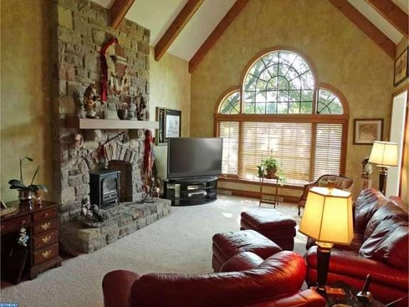 Incredible 4 bedroom 3.1 bath Brick Front Colonial on almost 1 acre with mature landscaping, in Council Rock School District. The 2 story entrance foyer divides both the formal living room and dining room both with transoms on their entrance ways. The family room is quite impressive with its cathedral ceiling, cherry wood woodworking, wet bar with cherry cabinets, large sunburst window and floor to ceiling stone wood burning fireplace. There is a bridge from the second floor over looking this great room. A large kitchen with an extended breakfast room, island seating, and many cabinets opens to both the family room and the deck. Outside of the kitchen is a butlers pantry with additional cabinets and a great space to set up for your party. Also on the main floor is a sophisticated room with cherry wood walls, that can be utilized as a fourth bedroom/office/library with its own connecting full bathroom. There is also a laundry room/mud room and powder room on the first floor. The second floor features a large master bedroom suite with a full bath, sitting room and 2 walk in closets. 2 other good sized bedrooms with a Jack and Jill bathroom occupy the second floor. This home also has a fully finished basement and 2 additional rooms built for storage. It has 2 zone heat and air, with a newer heat pump on the second floor and oil heat for the rest of the house. In need of some repairs and TLC, this home was the former model home for the development and has a lot of upgraded moldings, windows and features. Priced for its condition, this 4000 square foot home is a great value and will clean up beautifully. The property is very architecturally pleasing. Sitting on an almost one acre lot, it is surrounded by lush landscaping. This home which occupies the corner is strategically placed catty corner and has a front, side and back yard. Additionally there are front sidewalks along with a 2-car attached garage.