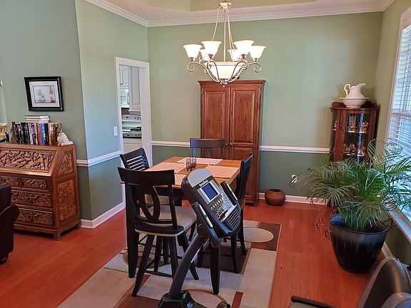 Curb appeal leads right up to a porch where you can rock the night away. Step into a beautifully appointed home with tray ceilings, great color paint tones and gorgeous hard wood floors all through out. Open floor entertaining from the living room with the fireplace that flows right into the kitchen with seated bar area, eating area, granite counter tops and tiled back splash. If that is not enough then there is a formal dining room. Master bedroom is on one side with a big master bath, dual sinks and WIC. The other 2 bedrooms are on the other side of home with their own bathroom. The bonus room has a closet and walk in attic storage. The big back deck has an awning that rolls out and lots of privacy for your BBQ, fenced back yard, a must see.