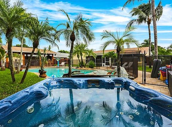 Watch the cinematic tour! You'll love this incredible 3 bedroom, 2 bath, 1528 sqft home, located in Willoughby Acres! Just minutes from I-75, shopping, great restaurants and some of SW Florida's most beautiful beaches, this home is impressive to say the least. Upgrades include a freshly painted interior, new A/C system and air handler installed in 01/2017, brand new baseboards, all new California closets and new windows. This home offers even more key features such as, an extended driveway, a 6 foot gate surrounding the back yard, wood-like tile throughout all main living areas and plantation shutters throughout. The light and bright kitchen boasts year old stainless steel appliances, built in cabinets, quartz countertops and recessed lighting. The master bedroom has ample space and lovely pendant lighting, with a master bathroom that offers plenty of cabinet space and vanity lighting. The outdoor area provides a shower and endless opportunities for fun with it's huge 26,000 gallon pool with waterfall, a jacuzzi, and a 440 sqft cedar cabana, built brand new, with a fireplace inside and full kitchen, complete with two glass refrigerators. You won't want to miss this opportunity!