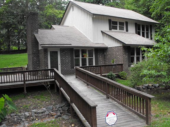 Residential, Two-story - Sanford, NC Lots of character in this unique home- large deck and 2 bridges make for a charming exterior. Family room with fireplace, eat-in kitchen with closet pantry. Huge pantry/storage room in the hall. Master bedroom and bath downstairs. 2 additional bedrooms upstairs with walk-in closets and full bath. In 2014 new carpet, exterior paint, hot water heater and plumbing. Nice wired workshop.