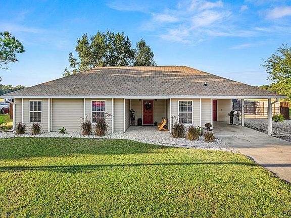 Escape the hustle & bustle! Very clean, well-maintained rural home with a PICTURESQUE BACKYARD & VIEW with room for all of your recreational toys! Owners made endless improvements over past 2 yrs! Front walkway/landscaping, widened driveway for more (RV/boat/trailer) parking, french doors in master/living room to patio, paver back patio, hot tub, privacy fencing, RainSoft water system, gutters & more! This home is ready to provide stress-free, country living! Close to Crescent Lake, Lake George, St Johns River. 20mins to Palatka, 45mins to St Aug, 1hr to Jax/Daytona. Open living/kitchen/dining w/ vaulted ceiling. Int laundry/storage Rm. Master walk-in closet & patio access. Ceramic tile in kitchen and bathrooms. Carpet in living room, hallway, bedrooms. Additional storage in hall closet. Ext utility room and storage shed. Septic pumped approx. 1 year ago.