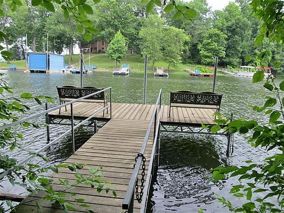 Waterfront home w/dock on beautiful KY Lake! Vaulted ceiling, brick FP & views of lake from greatroom. Dock is on cove just off main channel. Full partially finished basement. 2 lots-0.78 acre. Plenty of space to add on if desired. Close to marina/boat launch. Some furnishings negotiable. Great weekend/summer/full-time home. Some upgrades needed.