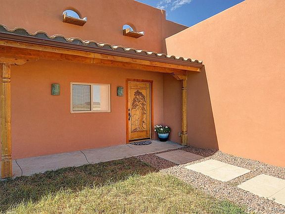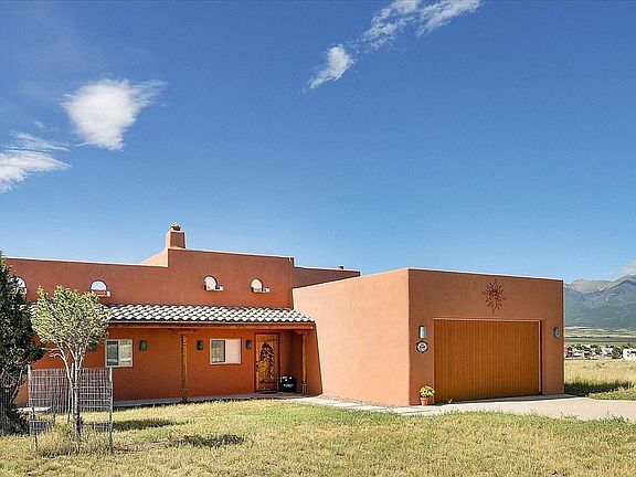 Mission Plaza is a small, distinctive development in Westcliffe, all homes are southwest, adobe-style. The location is ideal, walking distance to school, just blocks from the heart of Westcliffe, shopping, churches, parks, restaurants & summer activities. Unobstructed views of the Sangre de Cristo Mountain range are spectacular. A concrete & rock walkway lead to an impressive, one-of-a-kind hand-carved oak front door. A wood-burning kiva fireplace in the living room will be a welcome feature when the weather turns chilly. The large kitchen, open to the living area, is stunning, designed by a well-known local company, Frontier Kitchens. The huge island includes bar seating for 6 & plenty of room for food prep. Two different colors of granite were used as well as granite tile backsplash, laid in an artistic pattern, which is a stunning addition. Cream-colored cabinetry w/ soft-close drawers & cabinet doors, a nice pantry & high-end stainless appliances top off this custom kitchen. Cooking will be a pleasure in this beautiful space. There are 3 bedrooms & 2 full baths, both of which also have granite countertops. Soft, muted paint colors, stucco-type wall finish & light colored, wide-plank laminate wood flooring throughout give a warm feel to this home. Top this all off with a concrete patio which faces the expansive mountain views. Relaxing on the patio, taking in the scenery, will become a favorite pastime. Come enjoy the laid-back lifestyle & beauty that life in the Wet Mountain Valley offers.