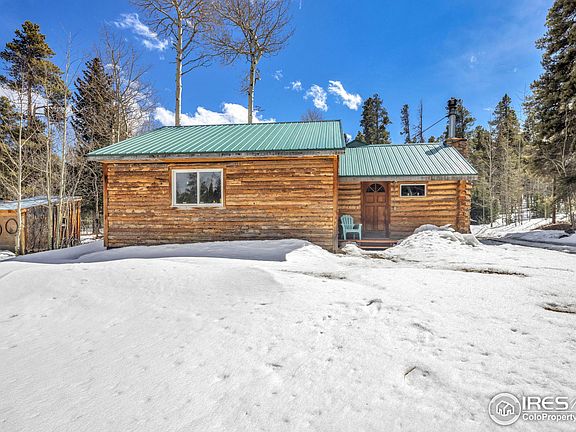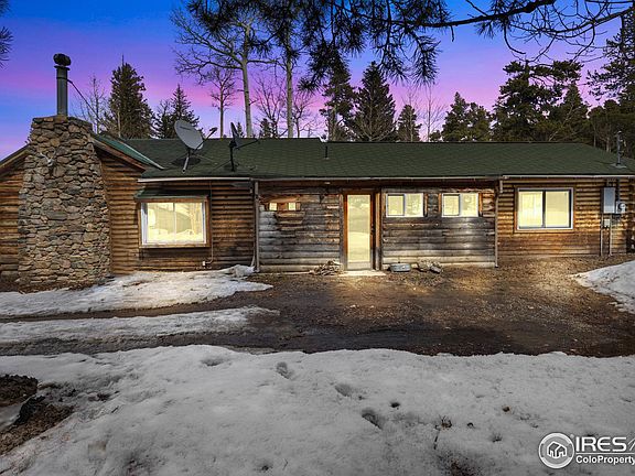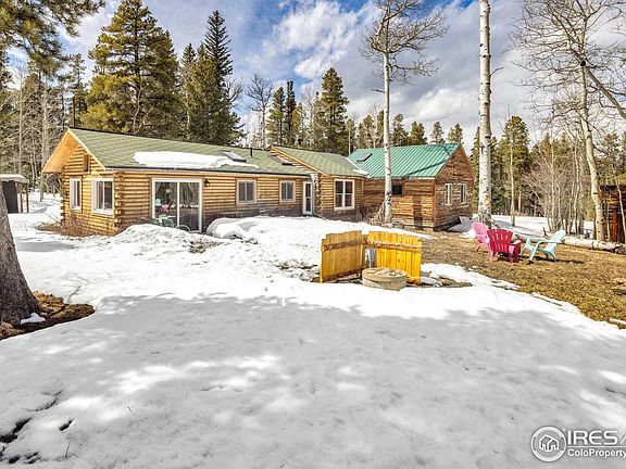 This expanded log cabin sits on 4 gorgeous FLAT acres near Rollinsville, just a short drive from Nederland & Eldora Ski Resort. The original log cabin built in 1957 was expanded and improved to its current 1,644 SF with a recent addition completed in 2005. Easy living in this 1 story ranch with an open floor plan that has 2 separate yet flexible living spaces. A bright kitchen opens to one living area separated by an island with bar-seating that is great for entertaining. Post and beam log accents, exposed original log cabin walls, T/G pine ceilings and walls accentuate the rustic charm. The stone fireplace has a beautiful wood stove insert that brings a cozy warmth into the center of the home while reducing your energy bills. Vaulted ceilings throughout add a spacious feel with multiple skylights that fill the rooms with sun and ample natural light. Large windows capture the beautiful acreage with huge breath-taking Aspens and large mature Pines, without a neighbor in sight! Sit on the front porch and watch the abundant wildlife stroll through your private yard. A sealed mud room entry doubles as storage for all your recreational gear, plus 3 sheds and a bonus studio space. This house needs some TLC but is a great value for the SF and acreage. A new roof will be installed prior to Closing. Live the Rocky Mountain dream and make this incredible cabin your own! Open House: 4/23 1-3 PM.