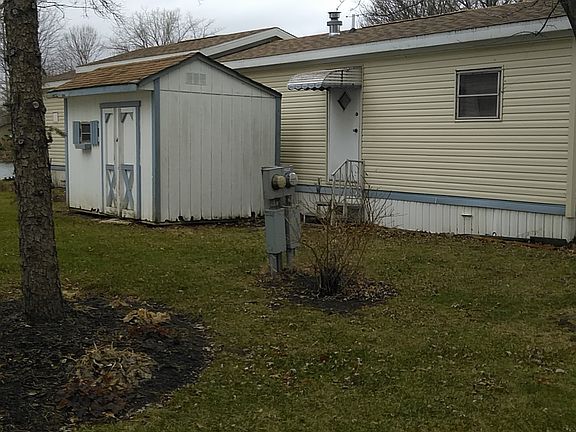 Single wide with a pull out large shed and brand new roof, siding this summer would be a year old. The inside is nothing but cosmedic things to fix up to someone's likeing. It does sit facing the pond,which has perfect view of the pond fountain. It's just across the street from lake Erie. Has 2 bedrooms, some what large bathroom, washer dryer hook up and kitchen,living room. Would be a great fixer upper for a summer home.