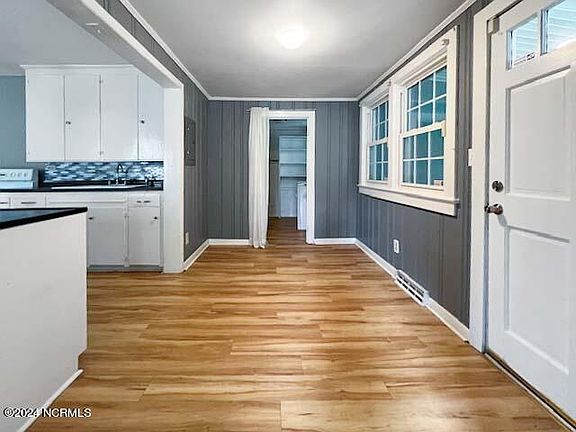 A charming 3-bedroom, 2-bathroom home featuring a spacious kitchen with an adjacent dining area ideal for gatherings. The third bedroom serves as an office, and there's a sunroom for extra living space. Situated near the historic downtown Edenton shopping area and waterfront, this home includes a primary bedroom with a private bathroom for added convenience. The cozy living room boasts a fireplace for warmth in colder months, and wood floors provide elegance and easy maintenance. Outside, the backyard offers a back drop for a serene retreat. Located in a cute neighborhood, this property is close to parks, and local amenities, offering a perfect balance of comfort and convenience for those who enjoy waterfront site seeing and exploring downtown Edenton's shops and eateries.