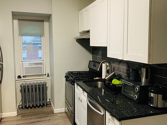 Newly renovated 1 bedroom apt. 3rd floor Close to train and downtown. Available Feb 15th, laundry in basement, parking space available on site for $50/month. Tenant pays electric and cooking gas, heating is prorated for winter months usually about $60/month during for heating.