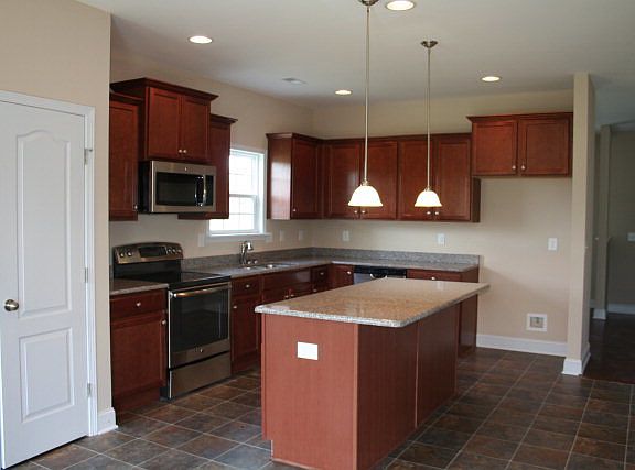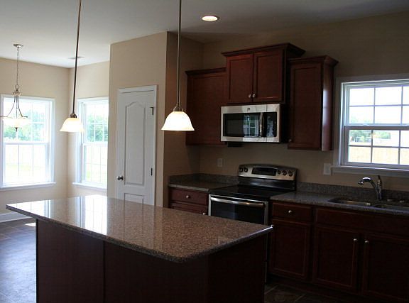 Moss Creek is located within 10 minutes of MCAS Main Gate and only 12 miles from Camp Lejeune main gate. This lovely neighborhood is just minutes to shopping and restaurants, but is nestled in a quiet country setting just off Blue Creek Rd. This location has all the conveniences you want, with no city taxes. The Morgan Plan features 3 bedrooms, 2.5 baths, a large open loft area and a 2 car garage with approximately 2287 heated square feet. The Morgan includes a Formal Dining room with elegant chandelier, and hardwood floors, You'll enjoy cooking in the open Kitchen featuring recessed panel cabinets with crown accent molding, elegant Granite counters, Stainless Steel appliances including smoothtop range, dishwasher and built-in microwave. The Kitchen also features ample countertop space pe