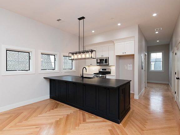 New construction in the heart of the city with private outdoor space. The interior offers a modern sleek design with everything anyone would want. 2 large bedroom, Master suit with large closets and massive sit in shower. A custom kitchen with Quartz counters, GE stainless steel appliances, large island with two tone cabinet and black honed metal finishes. Kitchen opens to a large open living room. This is all framed with Herringbone oak floors. This unit checks all the boxes with large deck off living room,, surround sound Sonos speakers, Ispy doorbell with visual intercom system, central air and heat, in unit laundry, Honeywell programmable thermostat and parking.