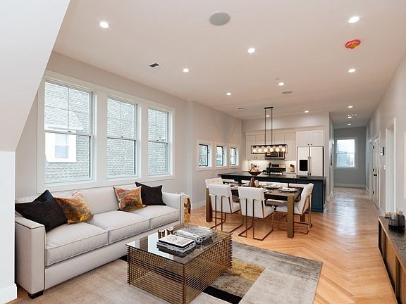 New construction in the heart of the city. This penthouse unit offers a modern sleek design with everything anyone would want. 2 large bedrooms, Master suit with large closets and massive sit in shower. A custom kitchen with Quartz counters, GE stainless steel appliances, large island with two tone cabinets and black honed metal finishes. Kitchen opens to a large open living room. This is all framed with Herringbone oak floors. This unit checks all the boxes with surround sound Sonos speakers, Ispy doorbell with visual intercom system, central air and heat, in unit laundry, Honeywell programmable thermostat and parking.
