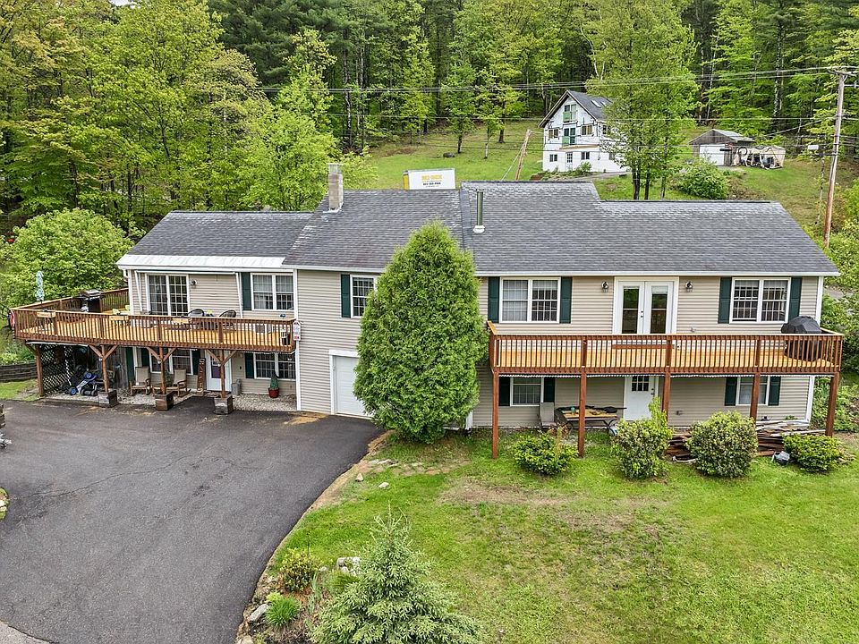Welcome to 108 Mountain Drive in Gilford, NH—a versatile and impeccably maintained ranch offering the perfect blend of comfort, flexibility, and breathtaking views. This unique property features a total of 5 bedrooms and 4.5 bathrooms, thoughtfully divided into two distinct living spaces: a spacious 3-bedroom, 2.5-bath main residence and a separate 2-bedroom, 2-bath accessory apartment. Each unit boasts its own private entrance, parking, utilities, and deck, ensuring privacy and convenience for multi-generational living or rental opportunities. Situated on 0.57 acres in the desirable Gunstock Acres community, this home offers deeded beach access to Lake Winnipesaukee and is just 1.5 miles from Gunstock Mountain Resort, providing year-round recreational activities. The main residence features an open-concept layout with a fully applianced kitchen, a primary suite with two walk-in closets, and a large family room. The accessory apartment includes a fully equipped kitchen, living room, and bedrooms on both floors, making it ideal for guests or tenants. Whether you're seeking a serene family retreat, an income-generating property, or a combination of both, 108 Mountain Drive delivers endless possibilities in a picturesque setting.