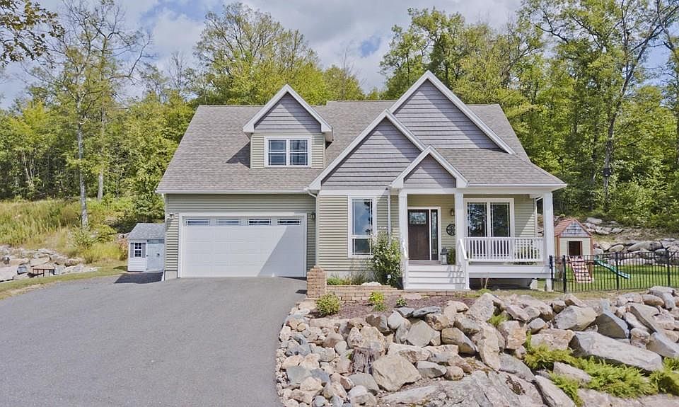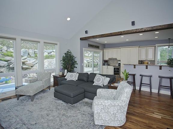 On a private, picturesque lot of more than an acre sits this beautiful house with 3 bedrooms, 2.5 bathrooms, and the stylish comfort you're looking for! Whether hosting a party or relaxing alone, hints of contemporary farmhouse add charm to generous windows and wood floors throughout the open floor plan. A luxury kitchen with stainless steel appliances, granite counters, breakfast bar, wet bar and wine chiller overlooks a spacious living room with Cathedral ceilings and floor-to-ceiling windows. Head through the slider to a backyard paradise with a large deck and patio or to the front porch for a front-row seat to stunning sunsets. Enjoy single-floor living thanks to laundry and a master bedroom with ensuite bath on the first floor, with 2 bedrooms and full bath upstairs. All of this awaits in 2,248 sq ft of living space and potential for more in a basement that's steps from being finished! Don't miss a tour during the Open House on Saturday September 8th from 10 to 11:30!!!