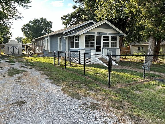 Charming Bungalow in Sperry-Original Town! Roof replaced 2021. Gutters. New Central Heat & Air 2022, Vinyl double-pane windows, Exterior paint 2022. new hot water heater 2021, flex room (small office, hobby room, etc), plus mud room at South entrance. Fully enclosed front porch with ample windows (NOT included in SF). 2-car carport with detached shop on the beautiful fully-fenced lot. Includes WASHER, DRYER, REFRIGERATOR, DISHWASHER, STOVE. Vacant adjacent lot for awesome views. Close to Owasso and Convenient access to Hwy 75. SELLING AS-IS. Home Inspection and follow-up recommendations are complete. New structural work completed with 20-year transferrable warranty.