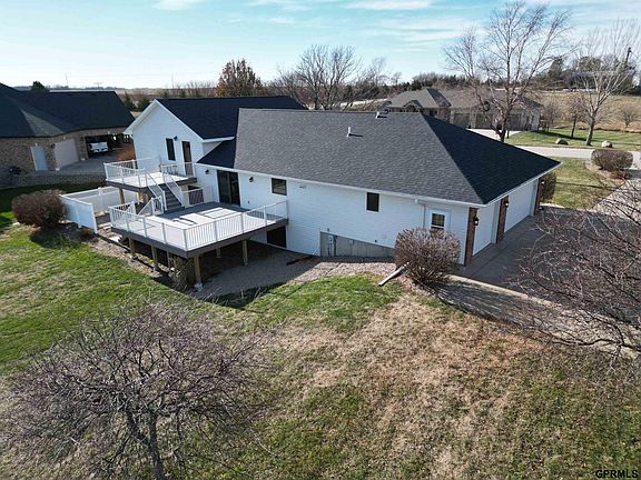 This beautiful home, located west of Nebraska City, along Fairway #5 at Table Creek Golf Course, is tastefully remodeled from top to bottom. From the moment you walk through the front door, you'll be wowed by the attention to detail in the aesthetically pleasing updates. The spacious, open-concept main floor is stunning, New kitchen cabinetry and island with gorgeous quartz countertops, stainless appliances, wood accent wall in dining area, lovely stone gas fireplace, wood flooring and a laundry/pantry that's ultra functional. Upstairs you'll find the owners suite with access to private balcony, walk-in closet and serene bath, 2 more bedrooms and guest bath. Need more space? There are 2 more levels downstairs, one featuring 2nd family room with walk-out, 2 more bedrooms and guest bath, and one featuring 3rd family room and large storage room. New Anderson windows, roof, gutters, siding, 2-tier composite decks, vinyl plank flooring in 2023 and many more updates. Golfers paradise awaits!