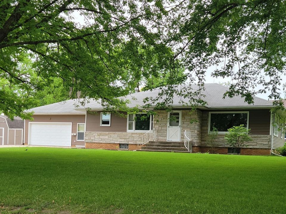 Very nice move in ready 2/3 bedroom home located on a large corner lot, with a nice sitting patio out front and nice breezeway for enjoying those nice summer evenings. This home is a Ranch style home with 3 bedrooms (1 bedroom is currently used as a laundry room), kitchen, dining room , living room, full updated bathroom and lots of closet space. Full basement that is unfinished but offers options to add bedrooms or family rooms. The attached 2 car garage has a small heater and between the garage and home is the breezeway. Outside there is extra parking space available and a shared driveway. The home has vinyl siding, w/stone and a newer Boiler system, Air conditioning system.