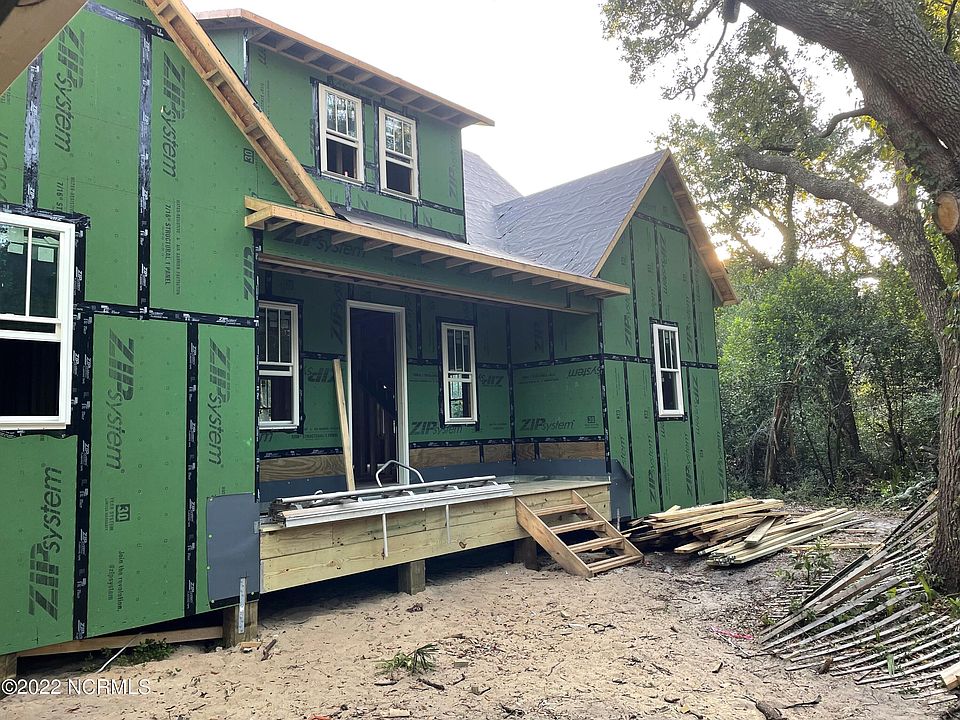 New construction located on North Bald Head Wynd across from the Creek Access. Conveniently located close to marina & post office. This home features 4 bedrooms plus a bunk room and 3 1/2 baths for a total of 2450 heated sq.ft. Has additional 288 sq.ft. with bedroom and bath in the detached crofter. This is a traditional floor plan home featuring granite counter tops, LVT flooring and ceramic tile in the baths. 5'' crown moldings, shiplap accent walls and board and batten accent walls. Home features a covered front porch and large covered porch overlooking the golf course on the back. Back porch has two accesses, main bedroom and family area. Completion spring 2023 just in time to enjoy your summer in Bald Head.