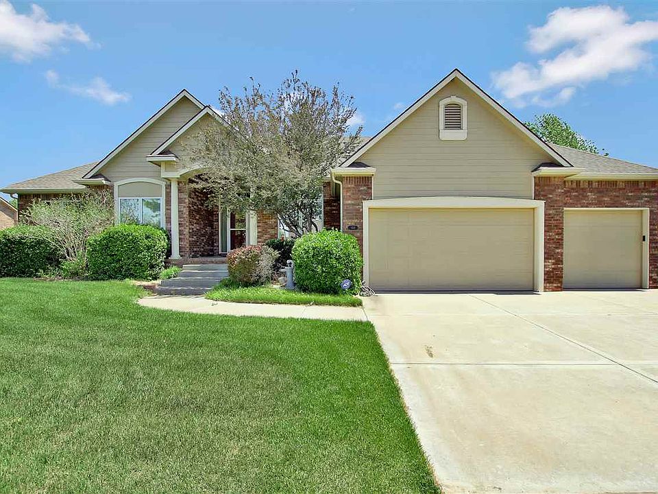 Spacious home in beautiful Pretty Flowers addition of Garden Plain. Enjoy the neighborhood pool and fabulous lake, which this home borders upon. Go fishing or paddle boat/canoe, from your backyard! This home has over 3400 sq ft with 5 bedrooms and 3 baths. There is a formal dining room and a breakfast nook. Two living areas upstairs and a large one downstairs. Incredible views of the large lot and lake. Large windows and a walkout basement, enhance the views. Unique kitchen design with plenty of seating, bonus cabinets in breakfast nook area and a cozy fireplace nearby. BRAND NEW carpet throughout! Lots of storage in the basement and a bonus room, currently used for exercise. Nice full bath in the basement and the view out windows show off the backyard and lake. There is a big basketball court in back, which just needs your goal. Great space for outside entertaining and view-able from the raised deck or the patio beneath. The 3 car garage is large enough for you vehicles and toys and the irrigated yard stays lush, all season long. This well built home has great features, since it was a model home and the special taxes have all been paid! The west facing design gives great shade in the back and ideal for entertaining guests. Living in a small, close-knit community, so close to Wichita and surrounding communities, doesn't get any better than this! Come see it before it's gone! (All info deemed reliable, but not guaranteed, check schools)