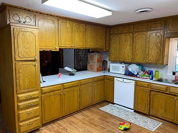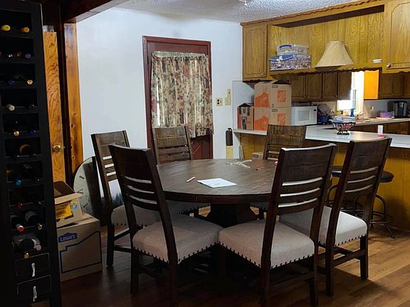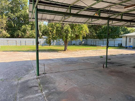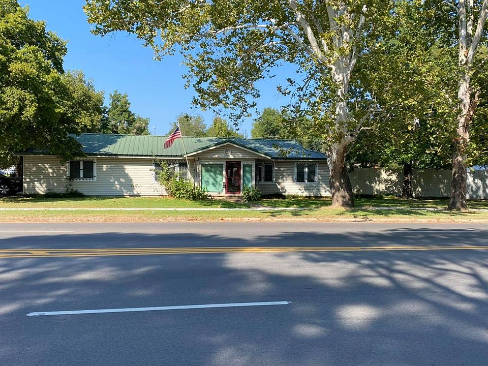 So much to offer on this property. 3-4 bedrooms, 2 baths, large kitchen, dining, glass front porch, formal living, sunken den with built in and bar. Original hardwood floors, glass back porch, large laundry room. Also, 5 bay garage/shop. Metal roof and privacy metal fence. Commercial zoned for business or great family home.
