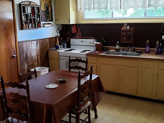 Small town living at its best. 3 bedroom, den, 1.5 baths. All appliances including washer and dryer remain. 28 x 40 detached heated garage. Newer well in 1997, 350' deep. Rubber roof, some newer windows. Earth stove with Pellets heat. New 2020 hook up to city sewer.