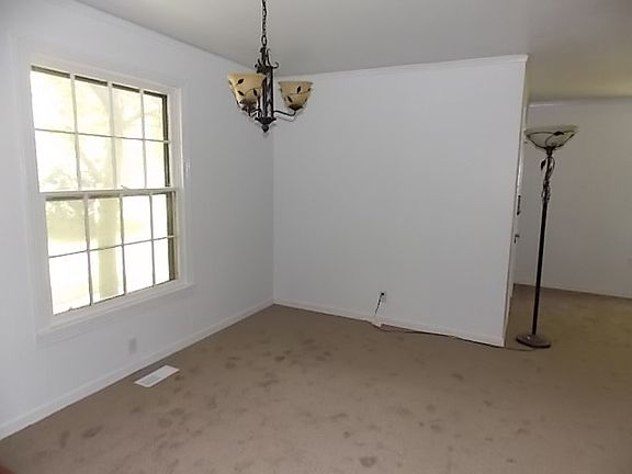 Fresh Paint and New Carpet make this neat house great. Two bedrooms plus an office or nursery, living/dining room, kitchen has six-year old appliances, new electric hot water heater. CH/AC has been serviced and is ready to go. Tall chain-link fenced back yard with a storage building. Bath has been recently updated.