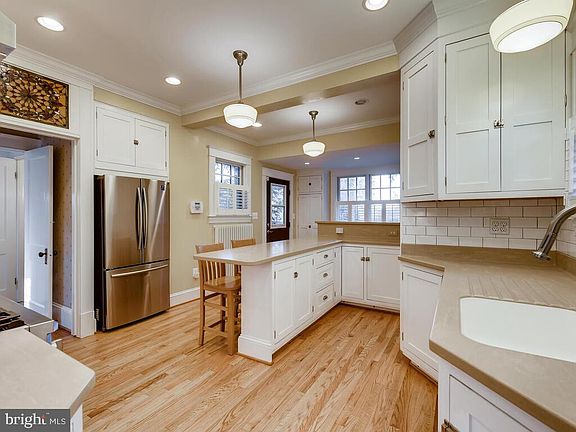 Welcome Home to this 1927 Dutch Gambrel home with original woodwork in Catonsville! 1/2 acre on a corner lot. Featuring 4 bedrooms and 3-1/2 baths. Hardwood flooring throughout the home. Enter through a grand foyer. Walk down the hall to the Country Kitchen which has been completely renovated. Offering two oversized pantries and stainless steel appliances. Pass through the kitchen into the large, formal dining room; a must for the holidays and family gatherings. Living area boasts a brick fireplace with gas insert. and unique arched wood doors leading into a four seasons sunroom full of light and lots of windows surrounding the entire room. This home is on an oversized corner lot, surrounded in the rear with six foot black wrought iron fencing and two entry gates. Perfect space for pets and children. The oversized, 2 car detached garage includes lots of cabinetry and work space. The 2nd floor of the garage has a finished studio apartment with a private, exterior entrance. The studio is perfect for an extra guest, a quiet place to get away or possible rental income. Both the home and detached garage roofs have been replaced. This home has too many updates to name. Download a list of all the updates and improvements in the documents section and schedule your showing today! This home won't last long!!